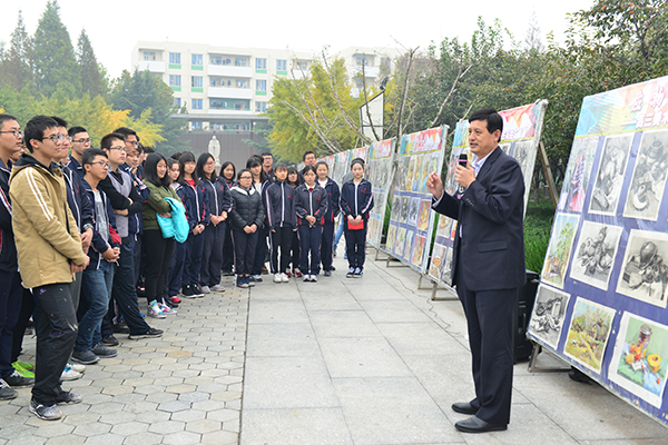 张申校长为本次活动致辞,并给全体美术专业生做指导。张校长首先结合自身经历谈了对美术学习和美术素养的认识。其次,针对高三的美术联考和校考,鼓励大家要锲而不舍,忘我学习。最后,肯定了学生本次展览的作品,并提出美术学习是"内外兼修"的事情。张校长的讲话,为高三美术专业生的学习指明了方向,增强了自信,激发了同学们学习的激情和信心。