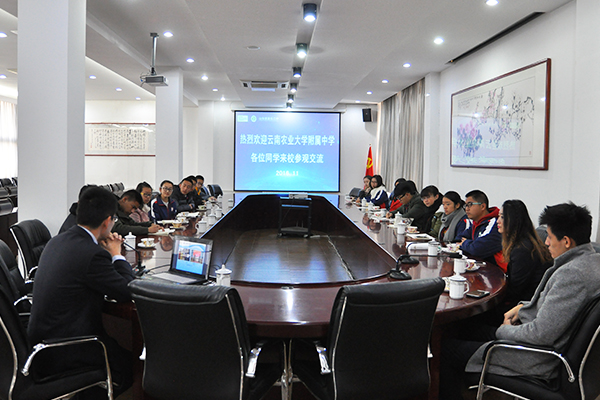 11月25日上午,云南农大附中一行16名师生来我校参观交流。云南农大附中师生一行首先进入高一年级课堂听课,随后,在怡心轩听取了李宝森副校长作的《办有价值的教育》的报告,与我校首席导师代表交流,参观学校校园、学生宿舍、图书馆、阅览室等场所,深入了解学校文化和学校特色。
