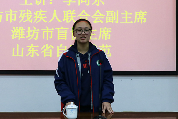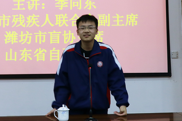 12月1日下午,国际部举行校外辅导员进校园活动。潍坊市残疾人联合会副主席、盲人协会主席、山东省自强模范季向东受邀来我校作报告,为国际部全体师生上了一堂精彩的人生规划课。部分学生家长也参加了此次活动。
