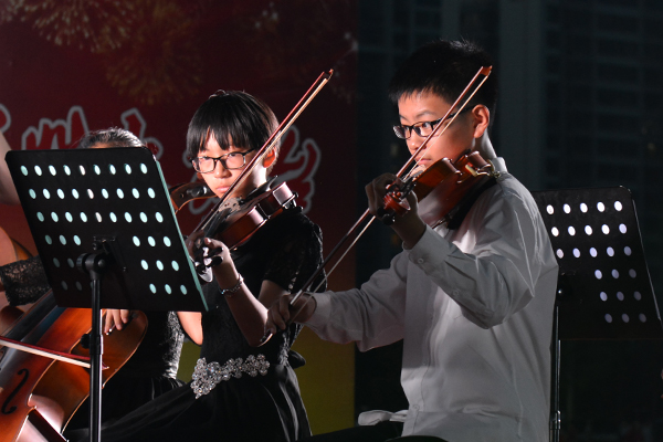伴随着交响乐《茉莉花》的优美旋律,晚会拉开了序幕。接着,歌曲演唱、舞蹈、乐器演奏、体育健身表演等内容丰富、异彩纷呈的节目轮番上阵,我校师生收放自如的舞台展示、个性十足的舞台风采、不断变幻的表演阵形掀起了一个又一个高潮,赢得了现场观众阵阵热烈的掌声。