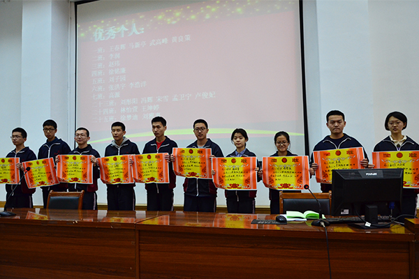 根据半学期来各个班级的发展情况,分别评出优秀班级、优秀自主管理团队、优秀学习小组、优秀个人,并对获奖的个人和团队进行了表彰。为同学们树立了榜样,进一步明确了标准。