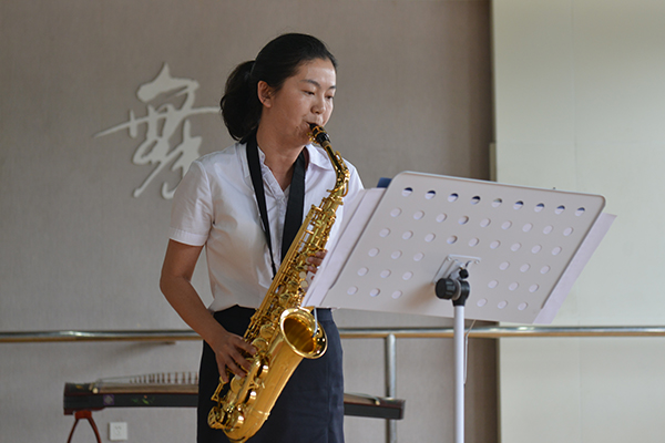 比赛中,每位教师充分发挥个人的专业优势,展示了扎实的专业基本功:扬琴独奏曲《黄河》采用冼星海《黄河大合唱》第四乐章《黄河谣》的主旋律改编,描绘出祖国山河气势磅礴、雄伟壮丽的画面;小提琴演奏《莫扎特第三协奏曲》音色优美、欢快流畅,跳跃的节奏焕发着青春的活力;古典舞表演《木兰卸甲》描绘了木兰从军归来顽强不屈、不畏世俗的巾帼女英雄形象……精彩节目展示渗透了中西方音乐文化的多样性。在最后的课程答辩中,老师们结合教学实际和课程课标研究,阐述了对课程、课堂教学、学科素养及相关教育理论问题的理解,思路清晰、表达流利,现场洋溢着浓厚的研讨氛围。
