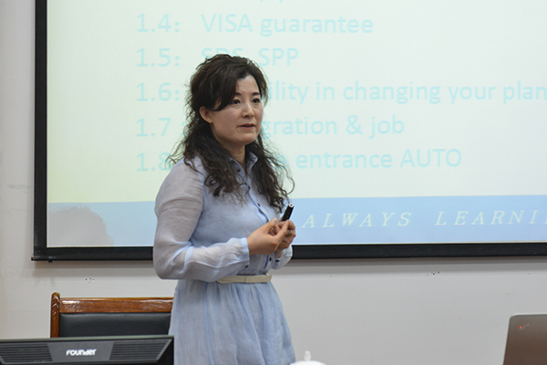 5月30日下午,环球雅思潍坊分校Susan校长、写作老师Grace来我校,在3号报告厅为我校高中部学生作雅思托福学习专题讲座,与同学们分享交流了关于出国留学及雅思托福写作、备考技巧等方面的经验,帮助同学们规划英语学习并进行指导。经过两位老师的耐心讲解,同学们了解并掌握了雅思托福考试的讯息和技能,学到了一些英语学习诀窍,受益匪浅。讲座在热烈的掌声中结束。