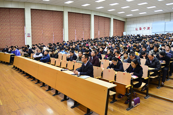 12月14日下午,集团贾世杰院长在一号报告厅为我校全体教职工作培训,副校长李宝森主持,全体教职工参加。