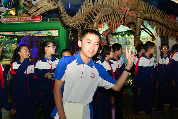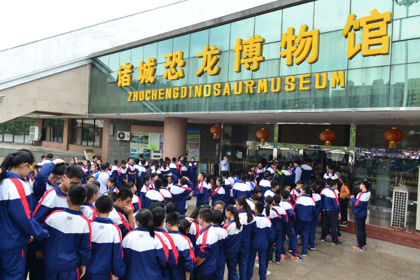 10月15日,我校组织初二年级师生到世界闻名的"恐龙之乡"——潍坊诸城市参观,了解恐龙的进化过程与灭绝原因,通过实地考察和记录思考,学习地质、生物、环境等多方面的科普知识。
