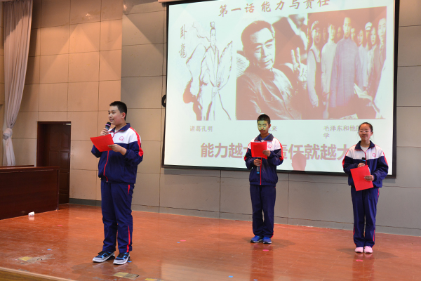10月13日下午,我校初二年级、初一年级分别在一号报告厅举行暑假读书交流会活动,在暑假里同学们认真阅读了《三国演义》和《名人传》两本书籍,交流会上,同学们大胆展示,积极参与,以自己的方式生动表现,以独特的角度表达了自己的收获与感悟。这里有精彩激情的个人演讲,有生动有趣的话剧表演,还有滕丽红副校长的深刻总结……全场掌声雷动,气氛热烈,同学们静心倾听,受益匪浅。