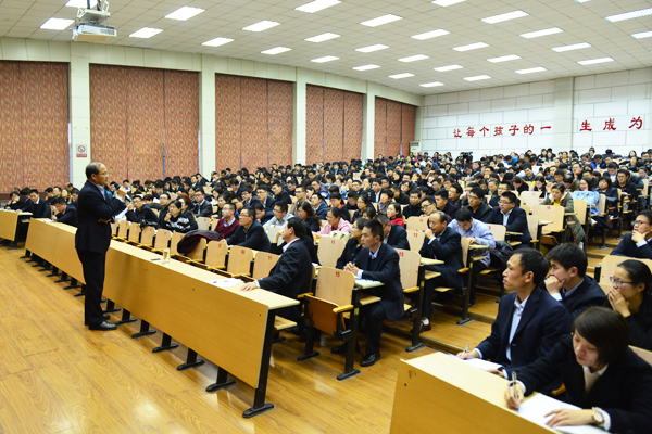 11月11日下午,赵丰平总校长在1号报告厅为全体教职工作培训,执行校长张申出席。