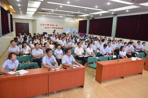 活动中,所有参会老师首先进行了集体交流,六位学科教师代表作交流发言,分享了暑期课程整合的感受、收获及成果;张申校长作指导,要求老师们提升学习能力;打通对学科的理解,树立正确的教育价值观,做父母型教师,提升课程水平,加强课堂创新,突出对学生的研究,建立一种适应教育;打通一个学期的课程和课堂工作思路。集体交流后,老师们分学科进行了交流、会商研究,优化课程整合和导学案模板,形成学科落实课程整合的项目书,并以一节课为例创新课堂设计方案。