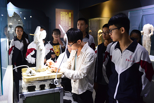 吃过午饭,同学们来到范公亭公园,参观了范公亭、李清照纪念馆、洋溪湖等景点,感悟了婉约派代表人物李清照、忧国忧民文学家范仲淹的人文魅力。尤其范仲淹倡导的"先天下之忧而忧,后天下之乐而乐"儒家思想,是中华文明史上闪灼异彩的精神财富,激励了每一位参观同学的进取精神。此外,同学们还参观了青州历史博物馆,欣赏了陶瓷、玉器、铜镜、古代书画、石刻雕塑及碑碣、龙兴寺佛教造像群等国家珍贵文物,体会到了华夏文明的博大精深和源远流长。