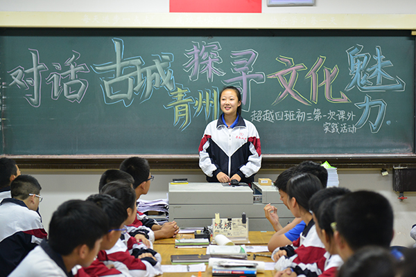 10月16日,初三级全体师生在学校副校长滕丽红、年级主任张海港带领下,走进国家历史文化名城青州,开展了"对话古城青州,感受文化魅力"校外实践活动。期间,执行校长张申专程赶到现场看望同学们,指导活动开展。