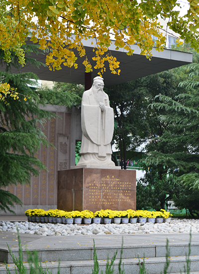 秋季里的孔子雕像