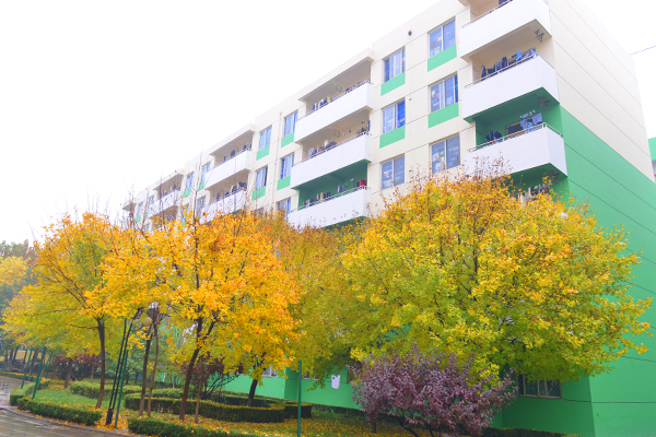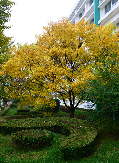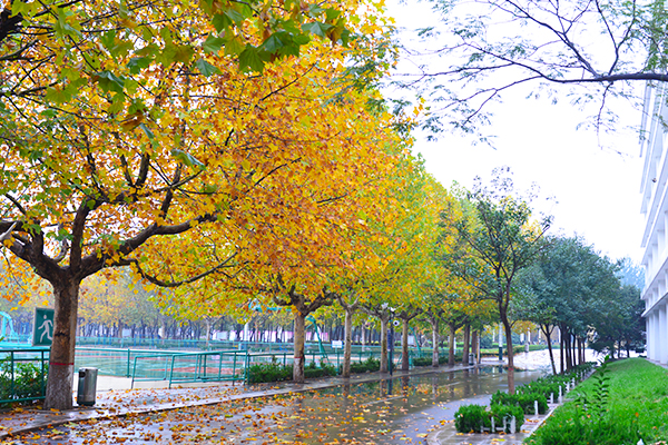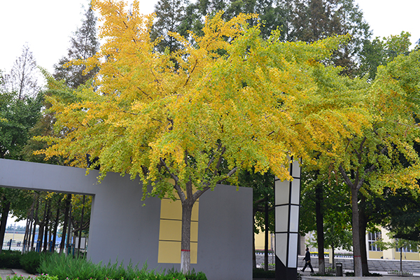 学生宿舍楼下浓浓的秋色