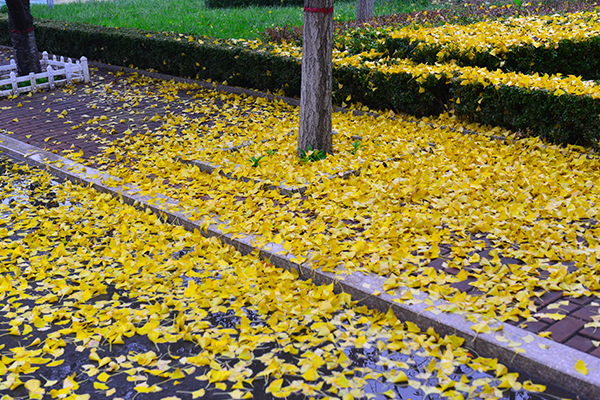 银杏树叶落满了一地
