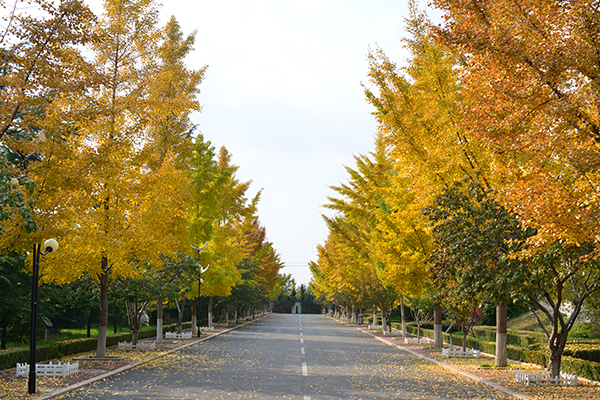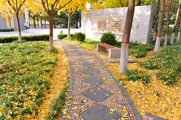 孔子像两侧的银杏树叶格外金黄