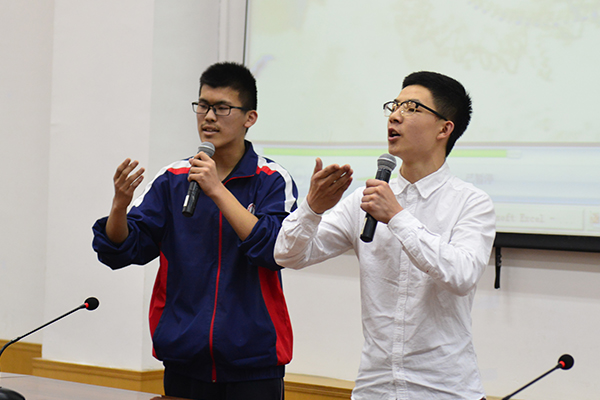 活动中同学们准备了多个精彩的节目,有《念奴娇·赤壁怀古》《梦游天姥吟留别》等古典诗词,也有《我是一个任性的孩子》《相信未来》等现代诗歌,更有《恍然大“雾”》这样新颖诙谐的现代专题诗歌;学生诵读形式多样,各个诵读团队准备充分,活动现场气氛活跃,学生们的参与度很高。高二年级语文老师现场打分,活动过程真实公平。