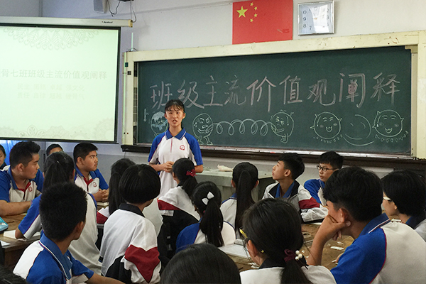 此次活动主要采取现场展示、现场答辩的方式进行,评比组由刘欣副校长、学生成长中心李康主任、一名年级领导和学生干部共7人,通过对班级显性文化,班级主流价值观的现场解读,班级主流价值观的现场答辩等项目进行评比,最后评选出"班级文化建设领跑班级"在全校表彰并颁发奖状。