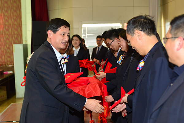 王建磊副校长为优秀员工颁奖