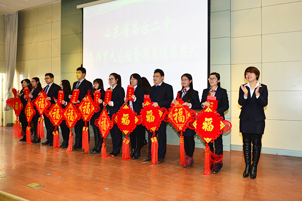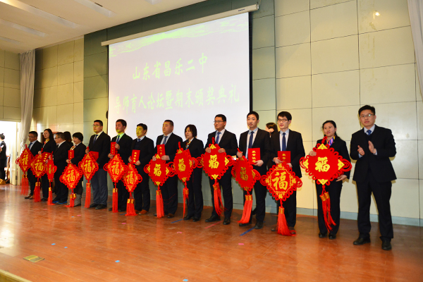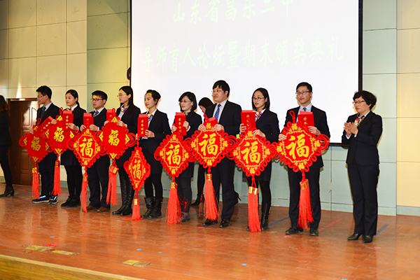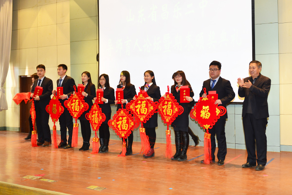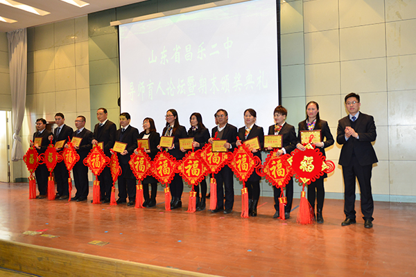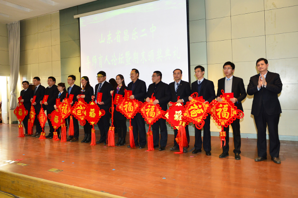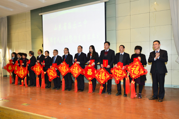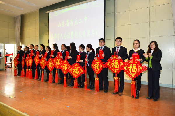 最后,张申校长作总结发言,并对学校一年来的喜人发展向老师们表示深深的感谢!他说:“昌乐二中是一所伟大的学校,在学校快速发展的今天,我们每一位二中人都要有三个自信,即‘学校自信’、‘团队自信’和‘文化自信’。在新的一年里每个人都要更加努力,更加幸福、美好”。