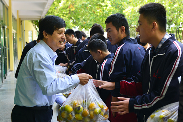 张申校长为孩子们发柿子