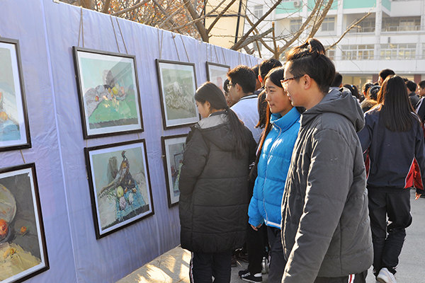 为丰富我校校园生活,陶冶学生高尚的道德情操,提高学生的审美情趣和能力,近日,我校在金钥匙广场成功举办高三美术专业教师作品展,此次展出的有设计作品、水粉静物、素描头像等100余幅作品,种类丰富,创意十足、个性鲜明、主题突出、技艺精湛,吸引了大批师生前来驻足欣赏。