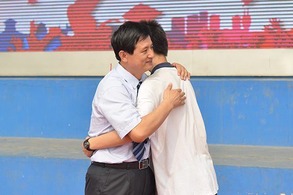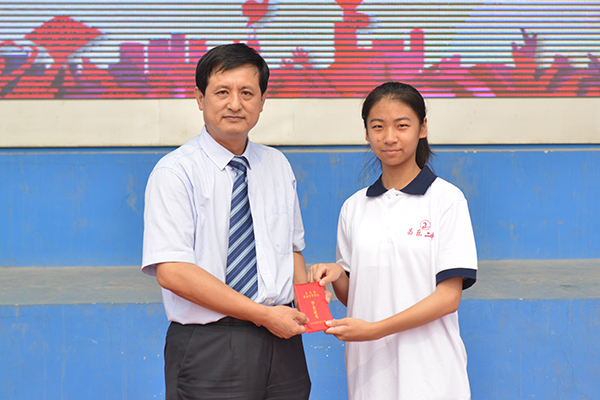 张申校长对孩子们的顺利毕业表示祝贺,他说,初中三年,同学们不仅成长了身体,更变得思想丰富、智慧丰实、目光坚定、行动积极,他为大家的成长感到欣慰。毕业不是结束,而是新的开始,面对高中生活,面对新的改变,张校长嘱咐同学们,首先,要做昌乐二中文化的传承者,把在二中养成的良好的行为习惯、思维方式、思想意识在高一发扬光大,感染和帮助周围的同学,同时,好好学习,努力成长,在传播文化、践行文化的过程中发展的更好。其次,高中对同学们有新的要求,随着大家年龄的增长,智力、思维能力和判断能力等都要有所提升,张校长叮嘱同学们:第一,思想上更坚定,进一步培养、发展自己科学的价值观、人生观、社会观,思想更成熟;第二,行动上更自觉,变被动为主动,让所有的学习活动走向研究性学习、探究性学习;第三,情感态度上更理智,对问题要有深入的思考,理智的辨别,凡事三思而后行,在追求自由的同时要服从规则,让自己健康地发展。最后,张校长祝福同学们在271教育的滋润和老师们的帮助下快乐成长,一起抒写更精彩的故事。张申校长还为毕业生代表颁发了毕业证书,并与同学们合影留念。
