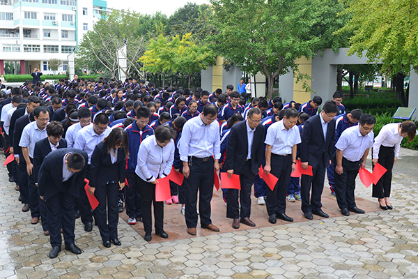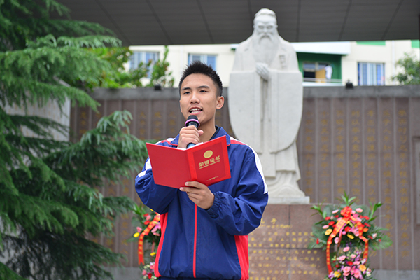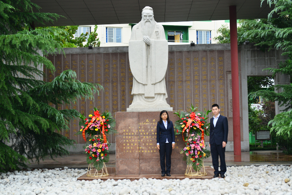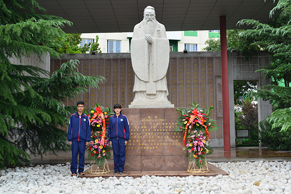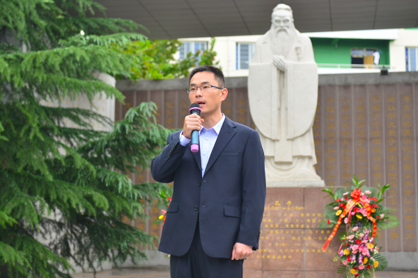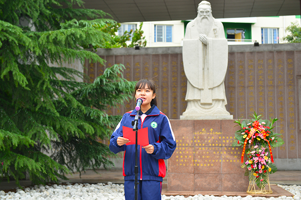 在庄重肃穆的气氛中,教师和学生代表分别向圣人孔子敬献花篮,众人鞠躬表达对先师的敬仰。学生代表李明彤同学发言,号召同学们学习圣贤学习的品质、豁达的精神和家国情怀;李宝森副校长在纪念活动中勉励广大师生,在表达对先师的尊崇与敬仰的同时,要更好地学习儒学思想,传播孔子文化,把中国传统文化发扬光大,增强民族自豪感。