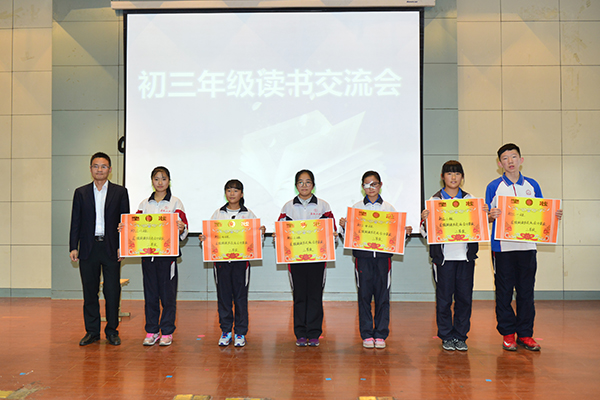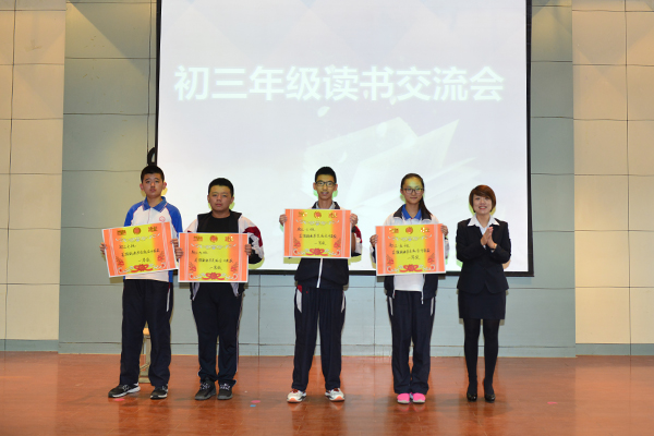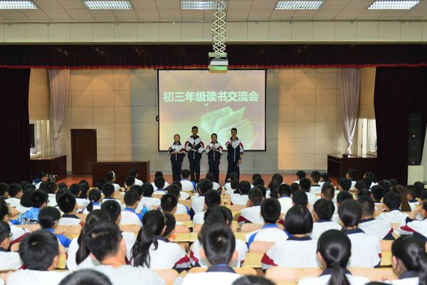 10月12日下午,我校初三年级在一号报告厅举行暑假读书交流会活动,在暑假里同学们认真阅读了《人生》和《把栏杆拍遍》两本书籍,交流会上,同学们大胆展示,积极参与,以自己的方式生动表现,以独特的角度表达了自己的收获与感悟。这里有精彩激情的个人演讲,有生动有趣的话剧表演,还有滕丽红副校长的深刻总结……全场掌声雷动,气氛热烈,同学们静心倾听,受益匪浅。