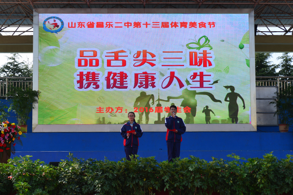 王建磊副校长在热烈的掌声中登台,宣布山东省昌乐二中第十三届体育美食节正式开幕!随后,体育美食节各个项目在学生4﹡100和教师8﹡100接力赛的加油呐喊声中陆续开展。