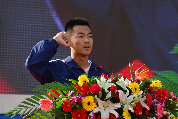 文艺表演结束后,运动员和裁判员代表分别宣誓,代表全体运动员和裁判员表达了公平竞赛的决心。