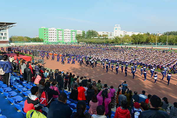 10月30日下午,我校第十三届体育美食节在学校运动场隆重开幕,学校副校长李宝森、刘欣、王建磊、孟维杰,高一年级主任吕真峰,国际部主任张文婷,学生成长中心主任李康,2016届家长委员会代表,学生会主席李明彤、社团联盟主席孟逸凡、学代会委员长郝建强出席,与全体师生一起观看了精彩的开幕式。