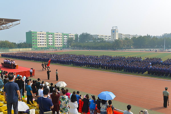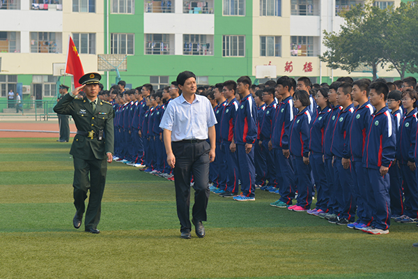 9月12日上午,我校2016级高一新生结束了为期12天的军训,在运动场举行了隆重的阅兵式。阅兵式由学生成长中心李康主任主持,承训部队首长,学校执行校长张申,副校长刘欣、李宝森,高一年级主任吕真锋及家长代表赵海峰、高春龙受邀在主席台就坐,和前来观看阅兵的高一学生家长一起检阅军训成果。