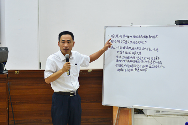紧接着在经验交流环节中,昌乐二中介绍了高三备考策略,及第中学介绍了文言文复习策略。最后,昌乐县高中语文教研员毛连峰作总结发言,从全国新课标高考题的考查方向、试题思路、考点等方面进行了科学、深入、细致的分析,并就2018届高考如何备考的问题同大家进行了研讨分享,为昌乐县语文学科一轮复习策略指明了备考方向,作出了具体可行的指导。