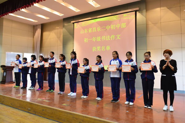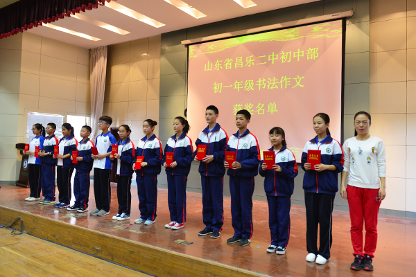 滕丽红副校长为书法作文获奖学生颁奖
