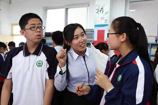 老师和学生一起探究问题