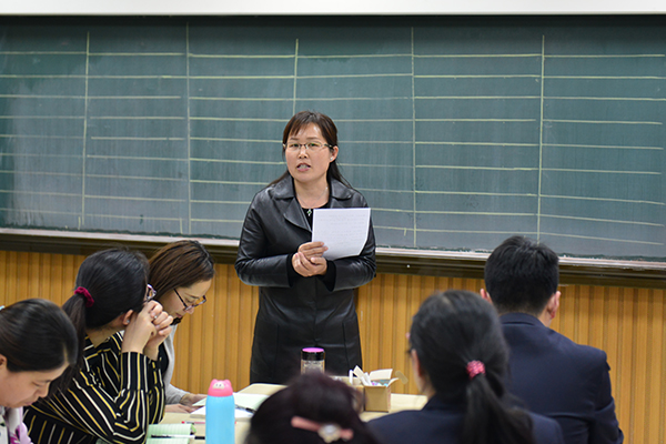刘萍萍主任对老师们的书法进行点评