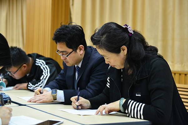 为进一步提升英语教师的基本功水平。4月13日晚,我校在录播教室举行英语教师书法比赛活动,张申校长出席,全体英语教师参加。