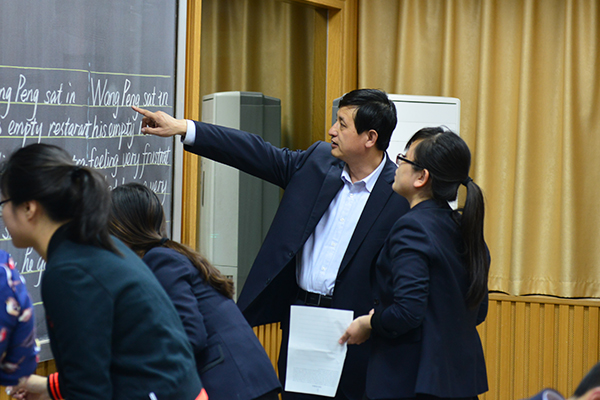 张校长对老师进行书写指导