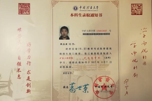 段浩然同学在高三开学不久,家遇变故,首席导师石志庆了解情况后一直特别关注孩子,不仅在学习和生活上给予帮助,更是特别关心孩子的心理变化,经常跟孩子谈心交流,陪伴孩子战胜困难,走出困境。在今年的高考中,段浩然同学以优异的成绩被“985计划”学校——中国矿业大学矿业类专业录取。
