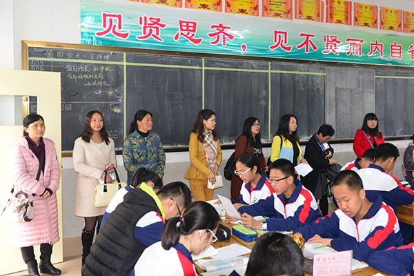 考察团一行到校后,参观了学校校园,观看了第七届艺术节活动宣传展板,深入初中课堂听课,详细了解了我校办学特色、课堂模式、育人机制和教育发展等方面的情况。随后,考察团一行又在3号报告厅观看了学校宣传片,并与我校教师就课程、课堂建设等方面进行了深入的交流。对我校先进的教育理念、独特的育人文化及气氛活跃的"271课堂"给予了高度评价。