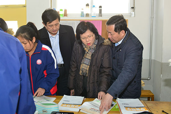 黎陈芷娟一行实地查看了校园,并深入初一年级(9)班和高二年级(28)班的教学现场,仔细观看学生学习和讨论,详细询问和了解了小组文化建设、学生成长日记、学生成长晋级评价等独特的育人方式,对学校探索推行的"271课堂"和小组学习方式以及在教育教学改革中所做的工作和取得的成绩,给予了充分肯定。