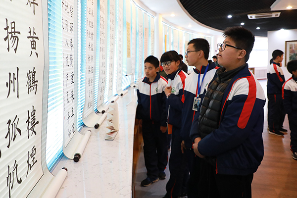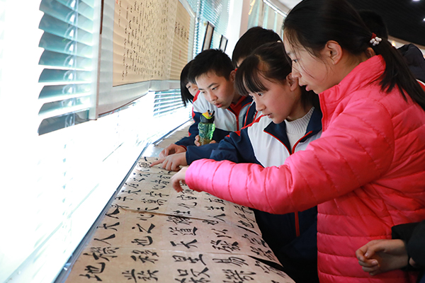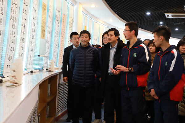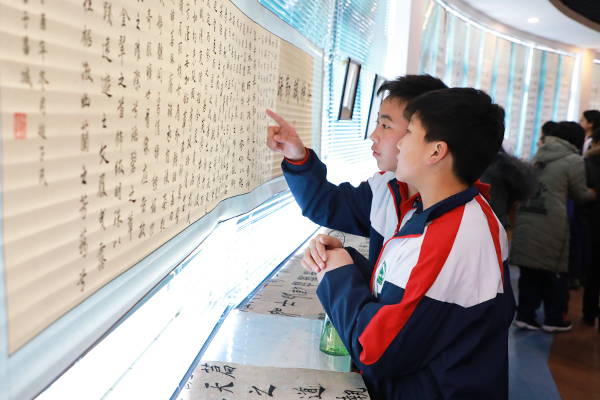 启动仪式上,张申校长致辞,他希望同学们喜欢书法,热爱书法;通过书法练好字,养成规范写字的好习惯;在书法练习中,学会做人,陶冶性情。紧接着,学生代表赵子民作了发言,交流了学习书法的心得体会,并倡议同学们学习书法,在练习书法中发现自己,成长自己。随后,师生共同走进书法作品展览室,一起欣赏书法作品,在众多书法作品中,有的气势磅礴、有的天真率性、有的灵秀隽丽,书法魅力感染着在场的每一位师生。