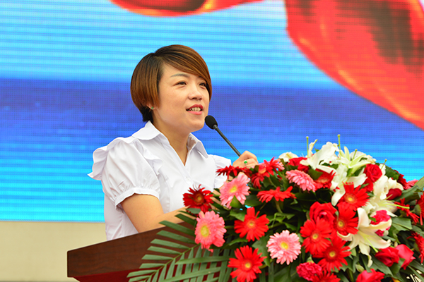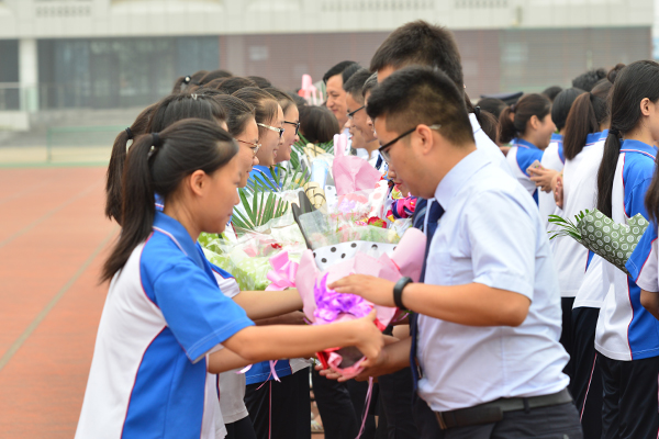 初三学生为老师们献花,感谢老师们的辛勤培育