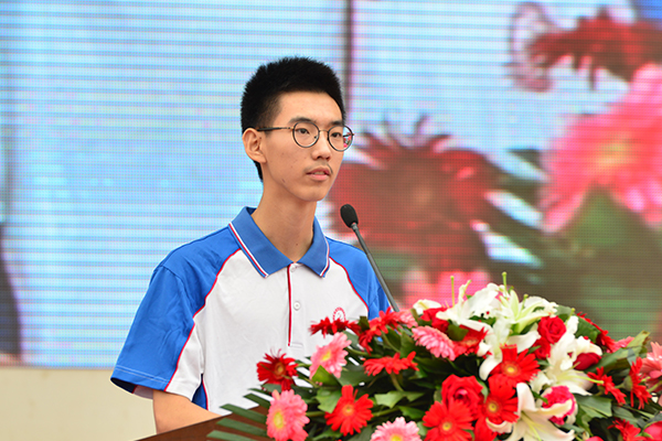 毕业典礼上,滕丽红副校长致辞,话语中饱含对孩子们的不舍和祝福;诗朗诵《成长 感恩 责任》,表达了孩子们对母校的辛勤付出满怀感恩和留念;毕业生代表崔昊源同学致毕业感言,分享了自己初中生活的收获和成长,表达了对母校的感谢;初三年级教师代表何福川向孩子们送上最美好的祝福。在热烈的掌声中,孩子们将鲜花敬献给辛勤培育自己成长的老师,并以深深地鞠躬表达心底的感谢和敬意。