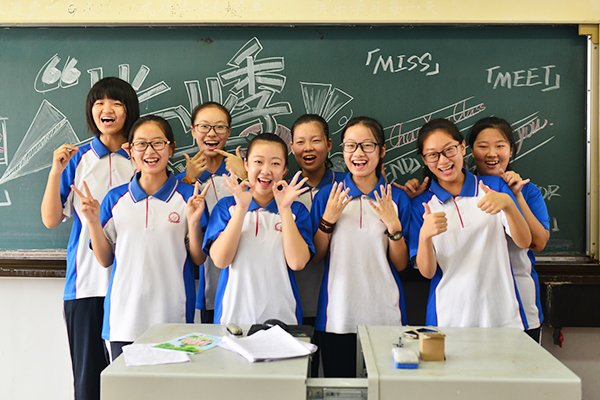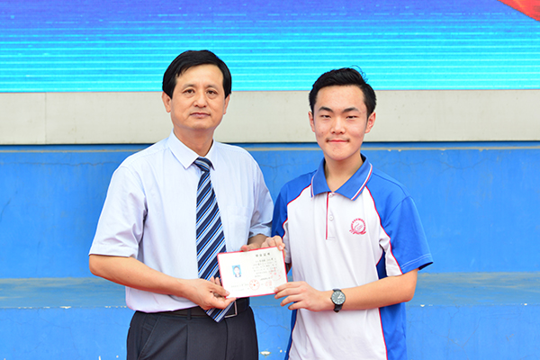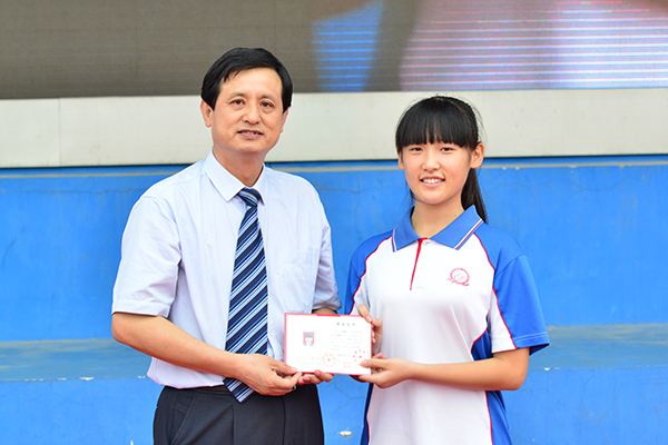 张申校长首先向初三的孩子们顺利毕业表示祝贺!面对新的人生旅程,张校长从做自我和别人的榜样、主动成长、担当责任、主动学习、积极参加暑假实践活动五个方面方面对孩子们进行了嘱托,希望孩子们能够在以后的日子里努力成长,实现自己的人生梦想。随后,张校长亲手为学生代表颁发了毕业证书,并与孩子们合影留念;紧接着,初三学生献上了歌曲《彩色的粉笔》,毕业典礼在优美动听歌声中圆满落下帷幕。