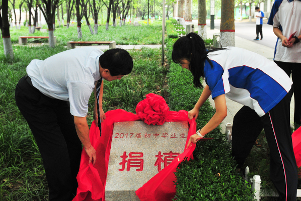 毕业典礼结束后,学校领导和毕业生代表、家长代表在2014级毕业生捐植的树木下举行了捐植仪式。捐植仪式结束后,孩子们纷纷回到教室举行师生话别会,现场气氛感人至深。