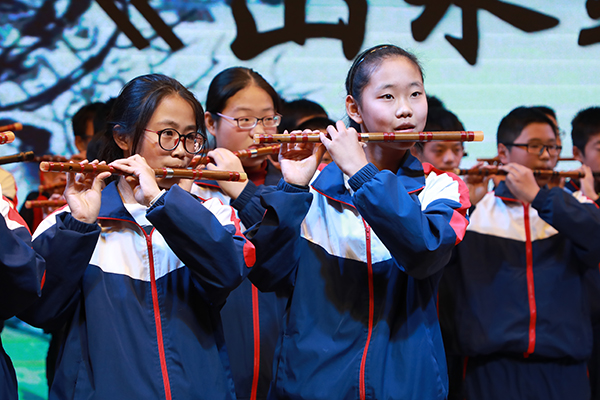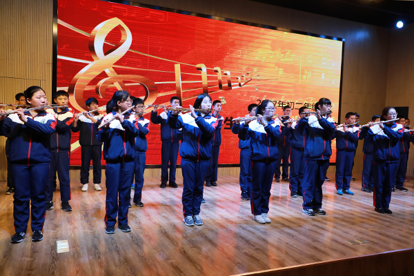 11月30日下午,我校初二年级在1号报告厅举行乐器学习期中成果展演,同学们按照所学乐器分组进行了精彩的演出。威风鼓《综合练习曲》、二胡《茉莉花》、长笛《念故乡》、陶笛《希望》、萨克斯《同一首歌》、小提琴《春天在哪里》,整个展演活动高潮迭起,精彩不断。展演期间,还设置了精彩活动节目, 音乐基础知识问答、音乐试听抢答、气息大pk等,活动现场掌声、欢笑声不断。孩子们用手中的乐器演绎着自己对音乐的独特理解,他们投入的表情、高超的技艺毫不逊色于专业艺术家。最后,初中部滕玉香主任对本次展演活动进行了总结,她首先对孩子们在舞台上精彩的表现和乐器学习取得的成果表示祝贺!她希望孩子们一定要珍惜乐器学习的机会,珍惜老师们的谆谆教诲,积极主动成长,让自己在音乐的世界里享受生活的美好。