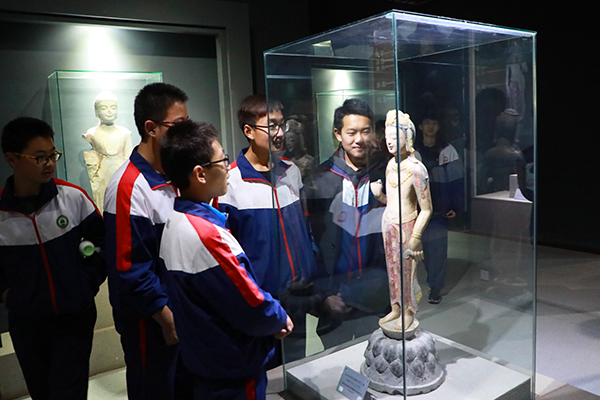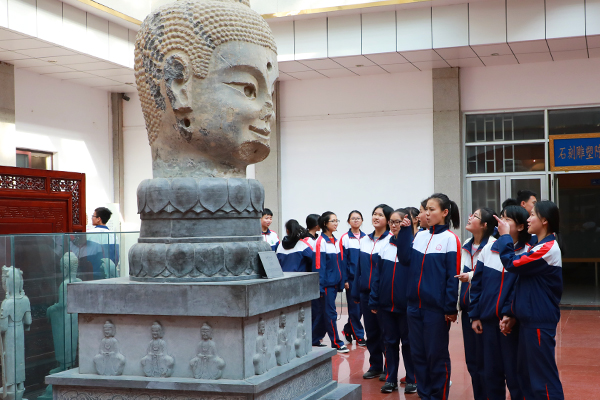 吃过午饭,同学们来到范公亭公园,参观了范公亭、李清照纪念馆、洋溪湖等景点,感悟了婉约派代表人物李清照、忧国忧民文学家范仲淹的人文魅力。尤其范仲淹倡导的"先天下之忧而忧,后天下之乐而乐"儒家思想,是中华文明史上闪灼异彩的精神财富,激励了每一位参观同学的进取精神。此外,同学们还参观了青州历史博物馆,欣赏了陶瓷、玉器、铜镜、石刻雕塑及碑碣、龙兴寺佛教造像群等国家珍贵文物,体会到了华夏文明的博大精深和源远流长。