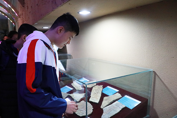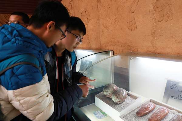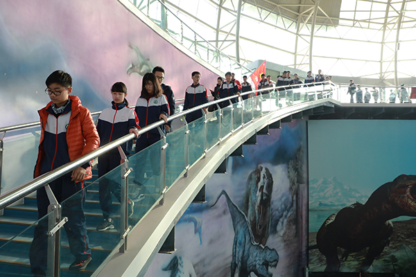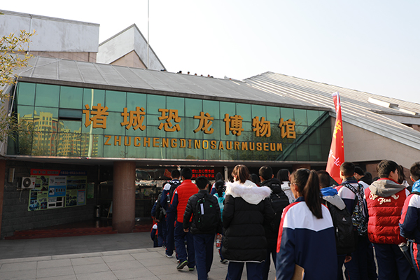 在诸城恐龙博物馆,同学们观赏了不同品种的恐龙化石骨架,见到了世界最大的鸭嘴龙化石;"巨大诸城龙",还观看了环幕电影、实物展示,通过导游的讲解,了解了恐龙种类、进化过程和灭绝原因;在中国首个暴龙遗迹遗址主题馆;诸城中国暴龙馆,同学们走近古生物遗址遗迹保护现场,观看多媒体科普视频,汲取恐龙科普知识;最后,同学们参观了"世界恐龙化石宝库";白垩纪恐龙地质公园,对布满恐龙化石的发掘现场和不同色彩的岩层感到惊叹,长约500米的恐龙化石长廊带给同学们无限震撼。