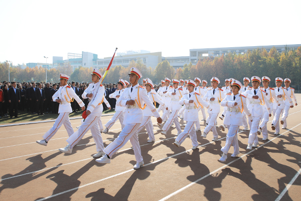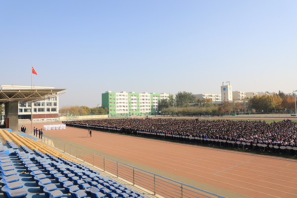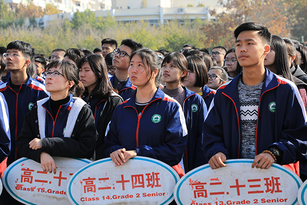 全体师生齐聚运动场参加升旗仪式
