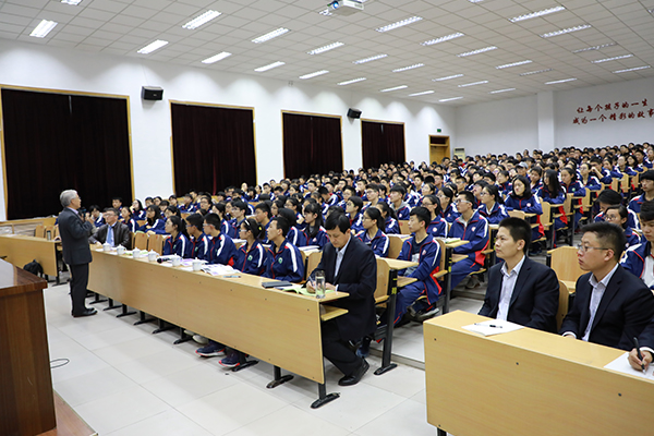 朱教授到校后,参观了校园,深入课堂,参观了271教育课堂,高度赞扬了我校先进的教育理念和校园文化。随后,朱教授来到学校2号报告厅为同学们作报告,受到了全场师生的热情欢迎。报告中,朱教授从科学发展史谈起,用轻松诙谐的语言向同学们解释了什么是科学、什么是工科、什么是材料、聚合物等当代科学理论知识,通过他自己的亲身经历和渊博学识,从专业的角度为同学们讲解了现代社会高分子材料科技的发展、应用及前景。整场报告内容深刻细致、幽默风趣,会场不时会迸发出阵阵笑声,在笑声中同学们感受到了科学的魅力、享受到了一场科技与文化的盛宴。现场交流环节,师生互动踊跃,朱教授一一耐心解答,博得了现场同学们阵阵掌声。